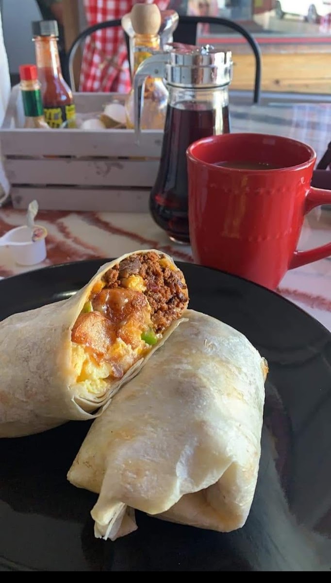 Stopped in while traveling, perfect spot in the nice small town. Great location! Great food, service is friendly. The breakfast burrito was amazing, great tasting.