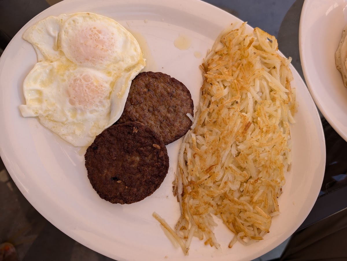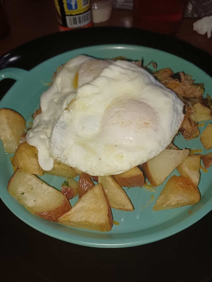 The Pulled Pork breakfast skillet is a must have. It was fresh, perfectly cooked and served hot. My partner loved his omelet and hash browns. Waitress was very nice.